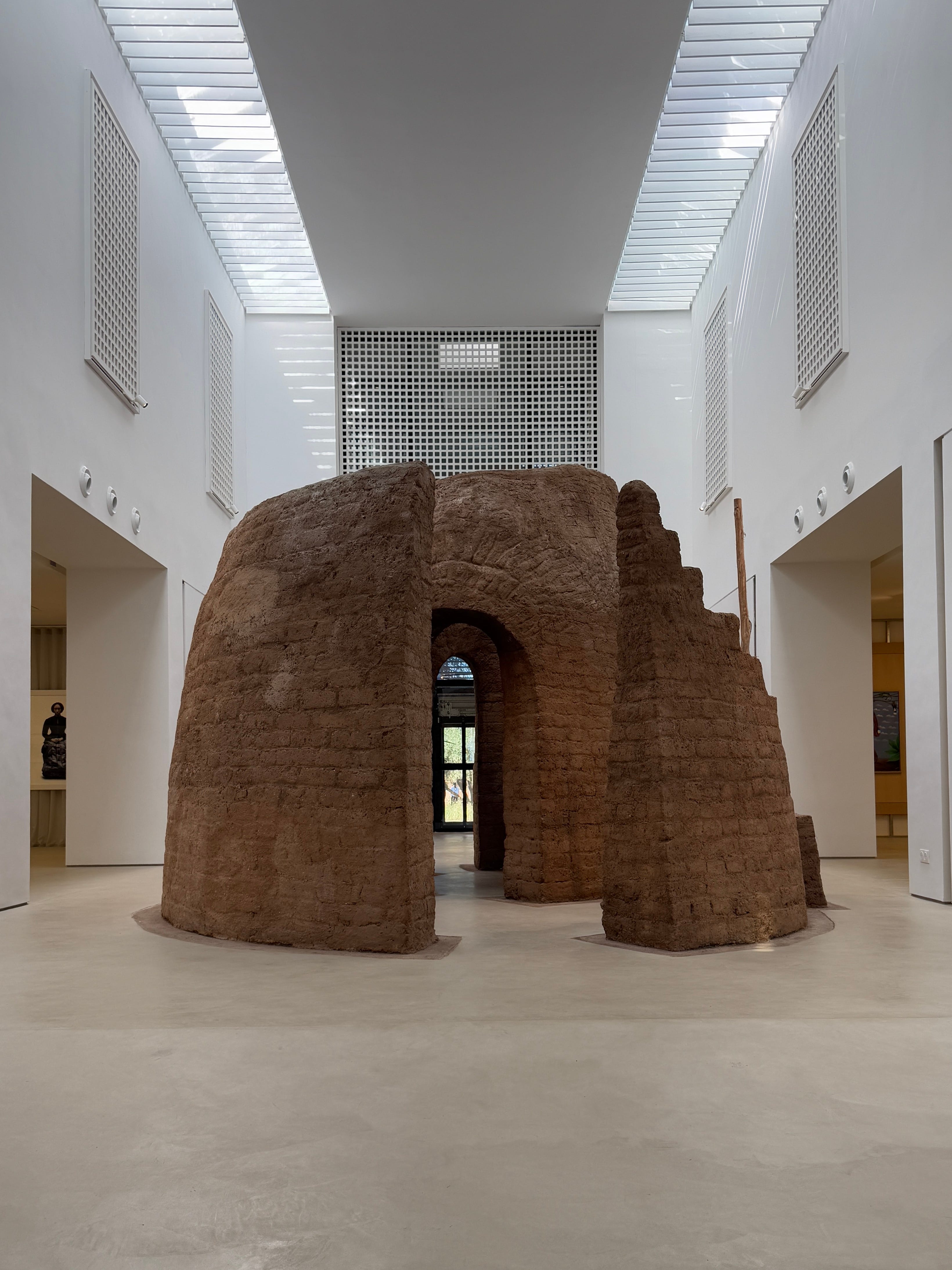 At the center of the museum stands the installation Dans les bras de la terre by Salima Naji. The architect and anthropologist has built a small dome, almost like a house.